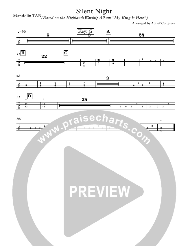 Download the Guitar Tab for Silent Night by Highlands Worship, from the album My King Is Here. This song was arranged by Highlands Worship Charts in the key of A, G.