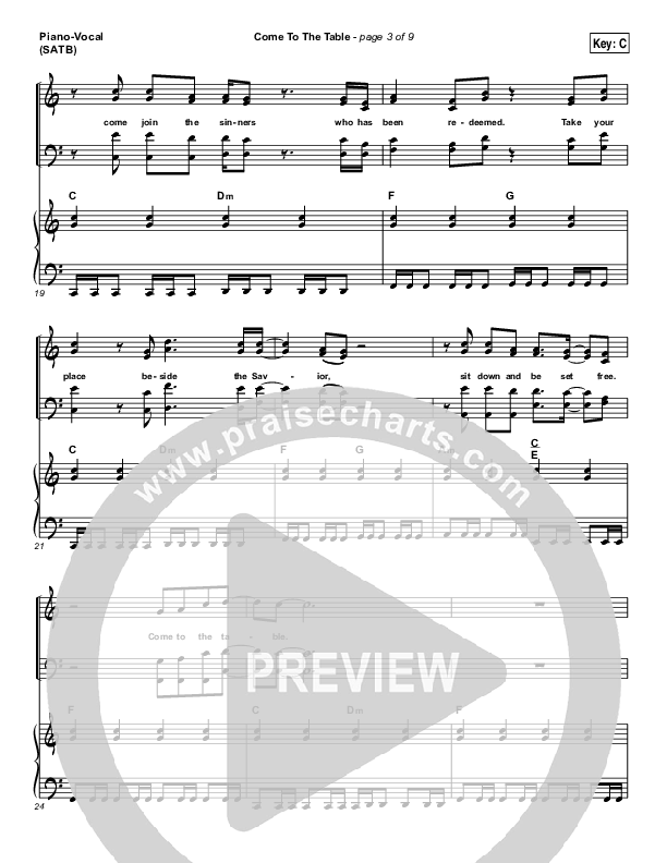 Come To The Table Sheet Music PDF (Sidewalk Prophets)