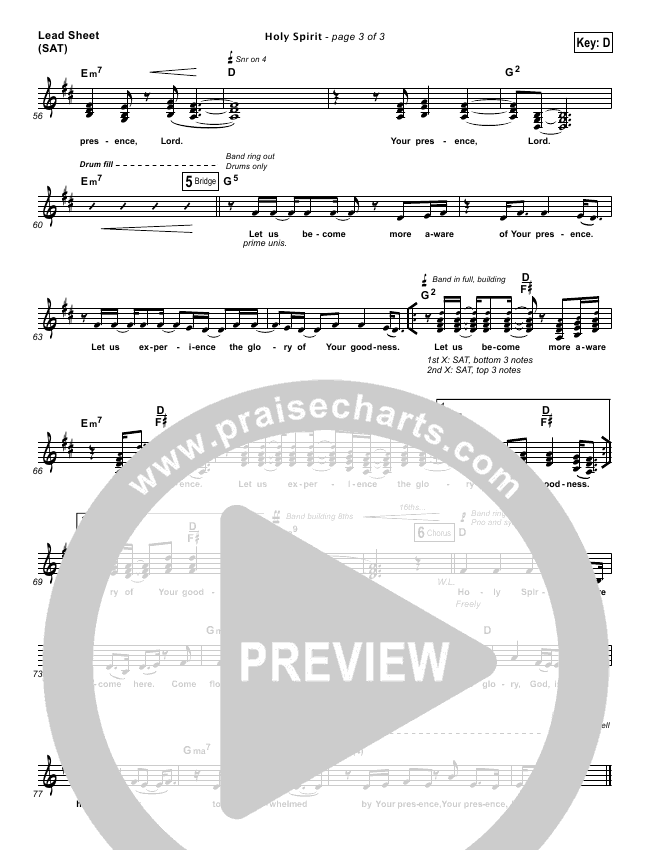Download the sheet music for Holy Spirit by Travis Cottrell, from the album All That Is Within Me. This song was arranged by Jeff Moore in the key of D, F.