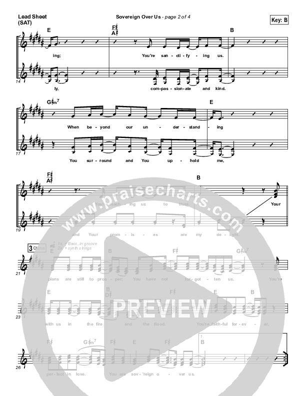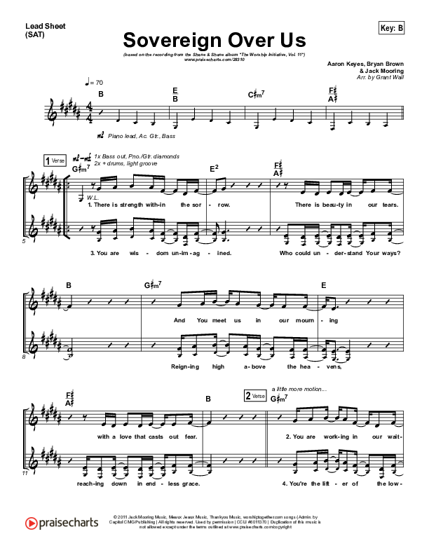 Download the sheet music for Sovereign Over Us by Shane & Shane / The Worship Initiative, from the album The Worship Initiative Volume 11. This song was arranged by Grant Wall in the key of B, C.