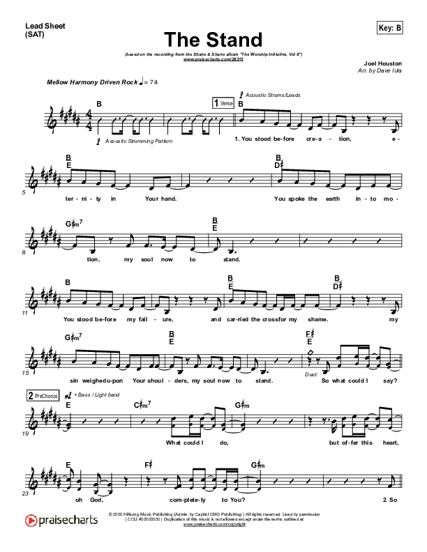 Download the sheet music for The Stand by Shane & Shane / The Worship Initiative, from the album The Worship Initiative Volume 8. This song was arranged by Dave Iula in the key of A, B.