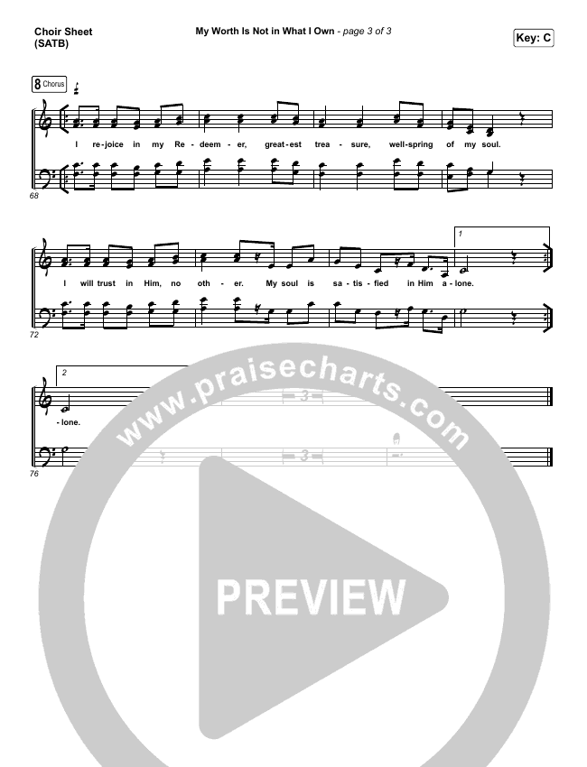 Download the Choir Sheet for My Worth Is Not In What I Own by Keith & Kristyn Getty, from the album Facing A Task Unfinished. This song was arranged by Grant Wall in the key of C, D.