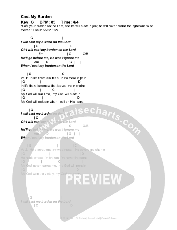 Cast My Burden Chords PDF (Summit Road Music)
