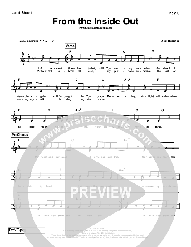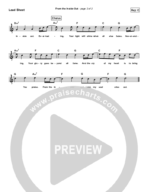 Download the sheet music for From The Inside Out by Hillsong Worship, from the album Simplified Worship. This song was arranged by PraiseCharts in the key of A, Ab, B, Bb, C, D, Db, E, Eb, G.