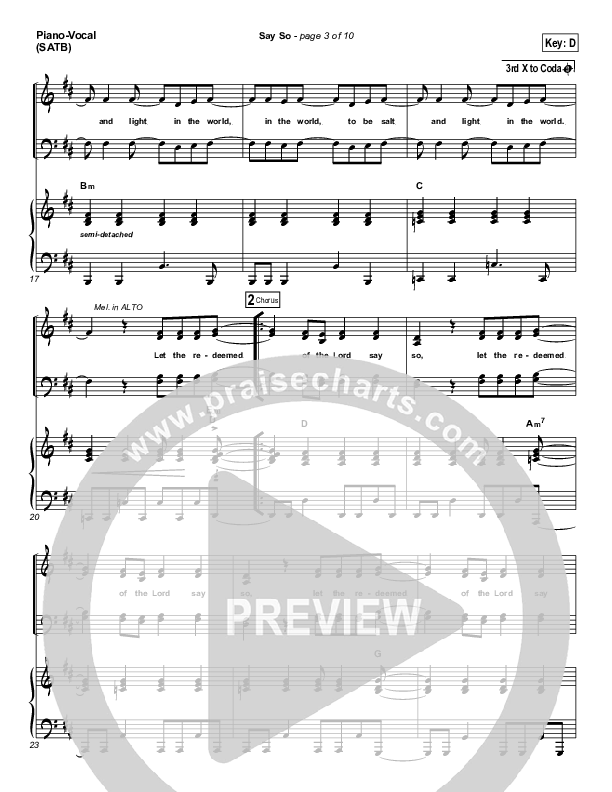 Download the sheet music for Say So by Israel Houghton, from the album A Deeper Level. This song was arranged by Daniel Galbraith in the key of E, F.