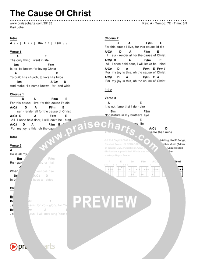 The Cause Of Christ Chords PDF (Kari Jobe)