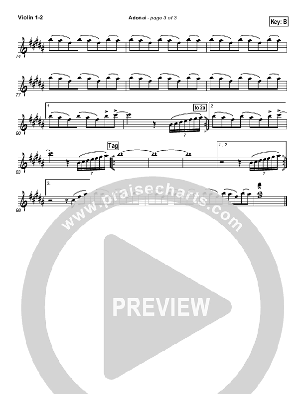 Download the Violin sheet music for Adonai by Hillsong Worship, from the album Mighty To Save. This song was arranged by David Shipps in the key of B, Bb.