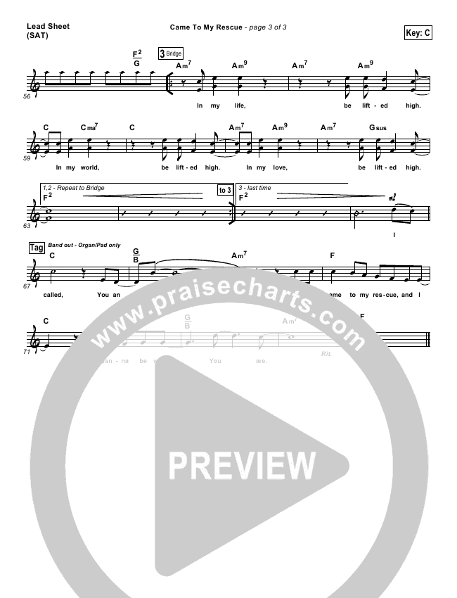 Download the sheet music for Came To My Rescue by Hillsong UNITED, from the album United We Stand. This song was arranged by Daniel Galbraith / Erik Foster in the key of Bb, C.