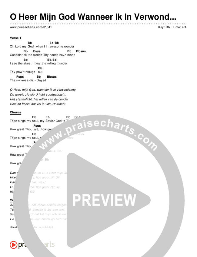 O Heer Mijn God Wanneer Ik In Verwondering (Simplified) Chords PDF