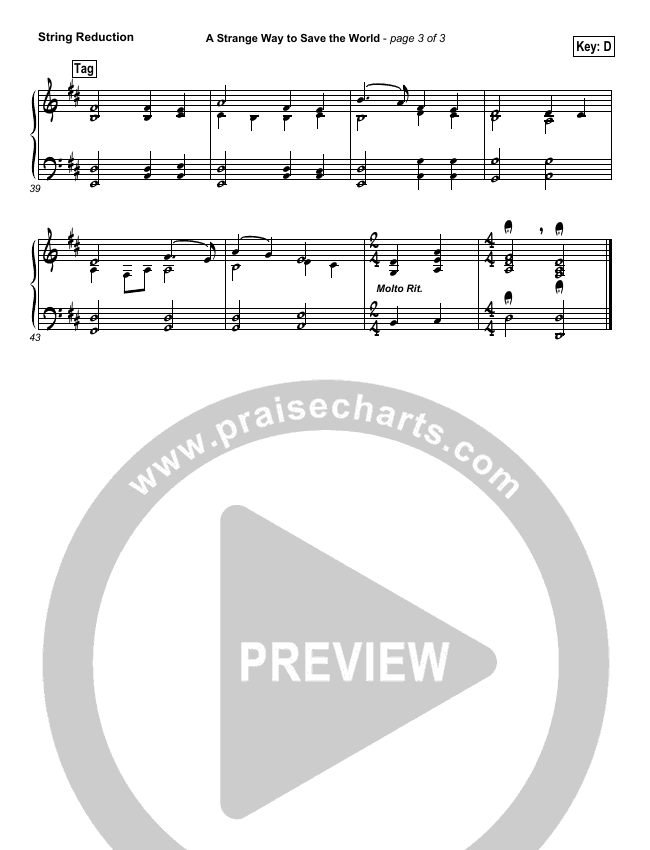 Download the Orchestration string parts for A Strange Way To Save The World by 4Him, from the album WOW Christmas Red. This song was arranged by Daniel Galbraith in the key of C, D.