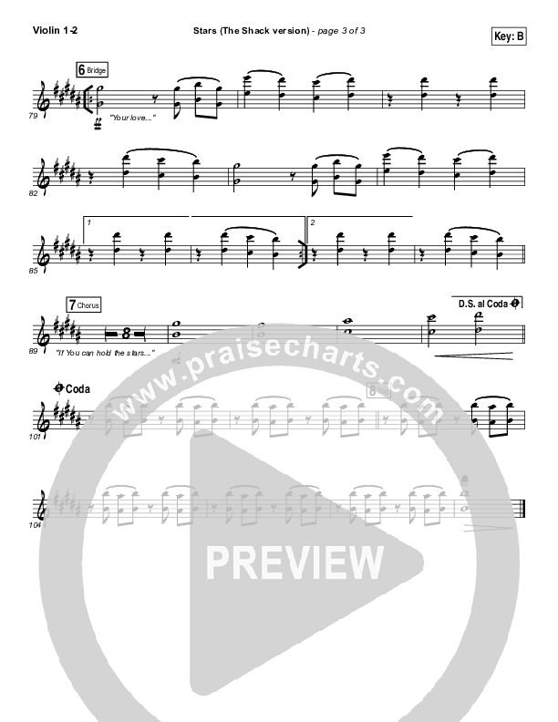 Download the Violin sheet music for Stars by Skillet, from the album The Shack. This song was arranged by Daniel Galbraith in the key of B, Bb.