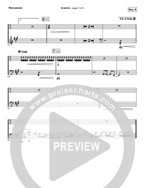 Download the percussion sheet music for Grateful by Elevation Worship, from the album There Is A Cloud. This song was arranged by Jared Haschek / Daniel Galbraith in the key of A, C, G.