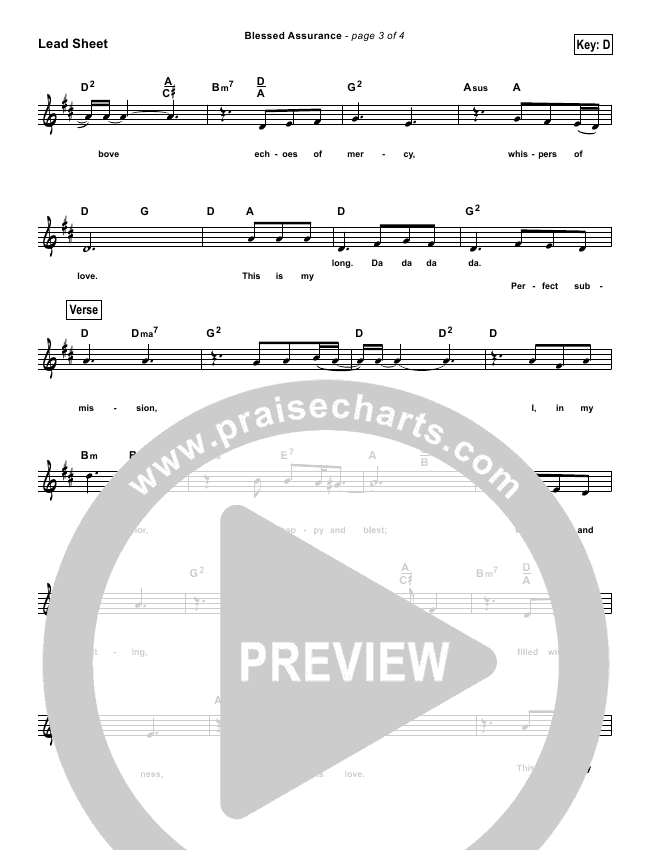 Download the sheet music for Blessed Assurance by Third Day, from the album Chronology Vol 2. This song was arranged by PraiseCharts in the key of B, Bb, C, D, Db.