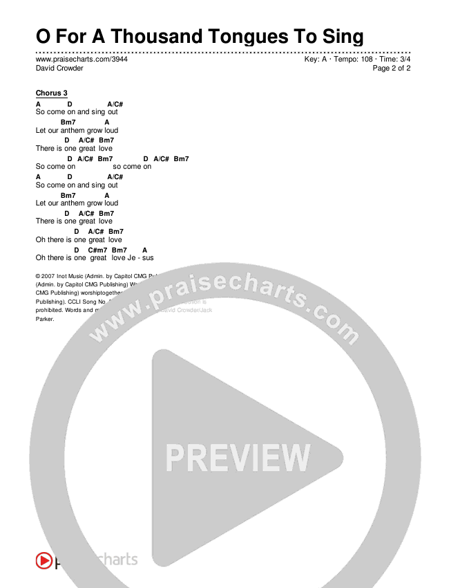 O For A Thousand Tongues To Sing Chords PDF (David Crowder)