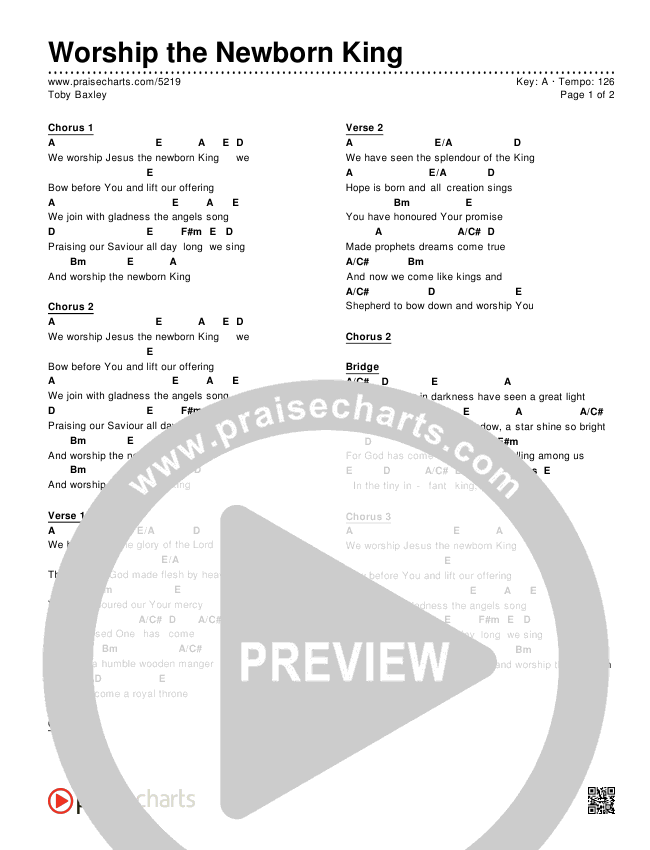 Download the PDF Chord Charts for Worship the Newborn King by Toby Baxley, from the album Worship The Newborn King. This song was arranged by Erik Foster in the key of F, G.