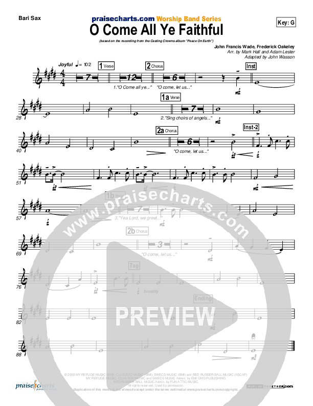 O Come All Ye Faithful Bari Sax Sheet Music PDF (Casting Crowns)