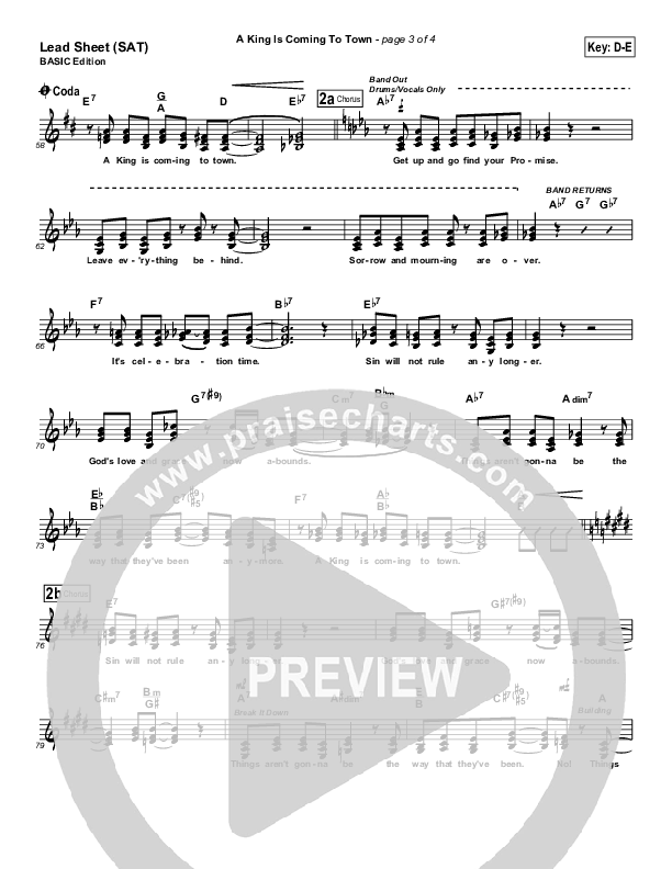 Download the sheet music for A King Is Coming To Town by Geron Davis, from the album Sing Joy. This song was arranged by Brad Henderson in the key of Eb.