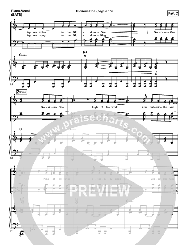 Download the sheet music for Glorious One by FEE Band, from the album We Shine. This song was arranged by Daniel Galbraith in the key of C, D.