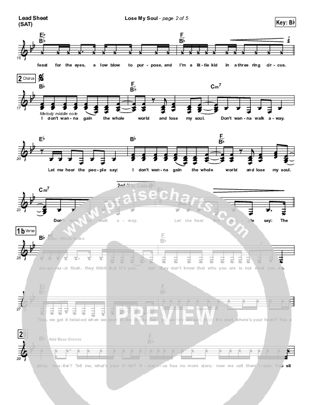 Download the sheet music for Lose My Soul by TobyMac, from the album Alive And Transported. This song was arranged by John Carlson in the key of Bb, D.