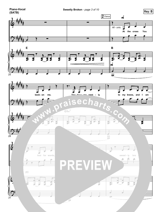 Download the sheet music for Sweetly Broken by Jeremy Riddle, from the album Full Attention. This song was arranged by Joel Mott / Kevin Eng in the key of B, Bb.