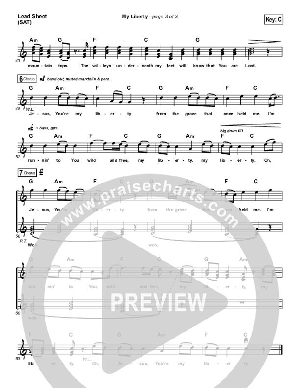 Download the sheet music for My Liberty by Zach Williams, from the album Chain Breaker. This song was arranged by Grant Wall in the key of B, C.