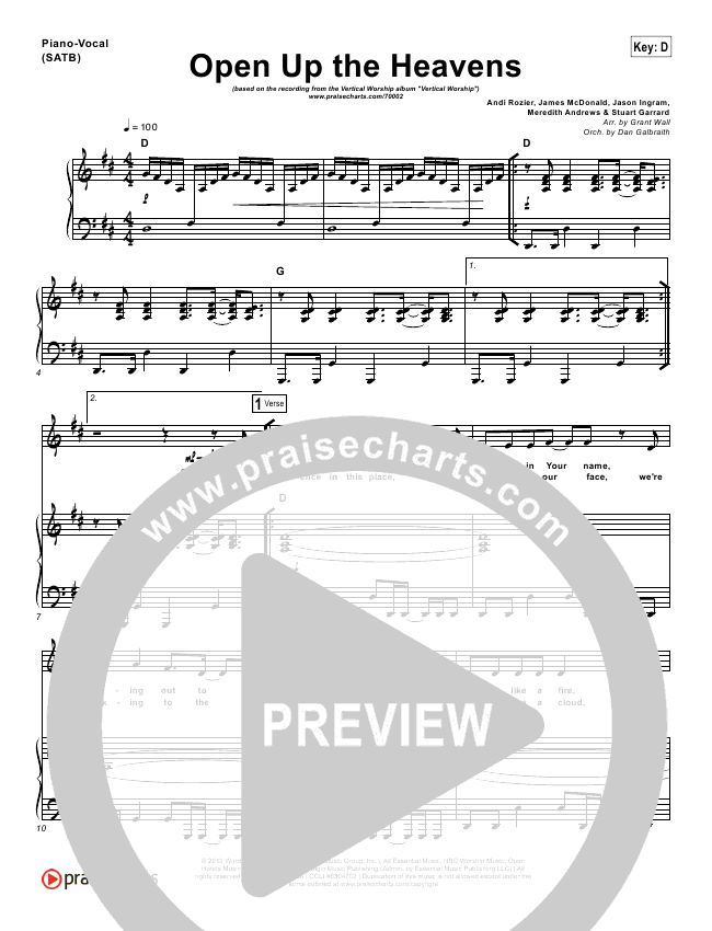 Download the Orchestration for Open Up The Heavens by Vertical Worship, from the album Vertical Worship. This song was arranged by Grant Wall / Daniel Galbraith in the key of C, D.