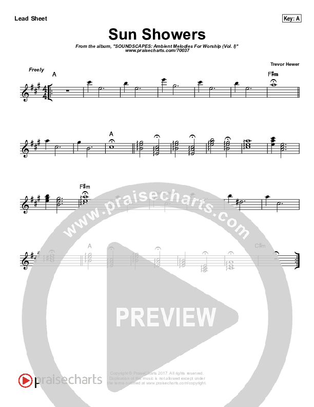 Download the sheet music for Sun Showers by PraiseCharts, from the album Soundscapes: Ambient Melodies For Worship Vol. 1. This song was arranged by Trevor Hewer in the key of A, Ab, B, Bb, C, C#, D, E, Eb, F, F#, G.