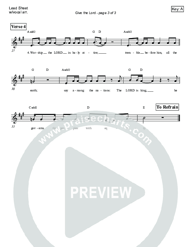 Download the sheet music for Give The Lord (Psalm 96) by Victor Rodriguez, from the album Psalms And Acclamations: Fall 2017. This song was arranged by Victor Rodriguez in the key of A.