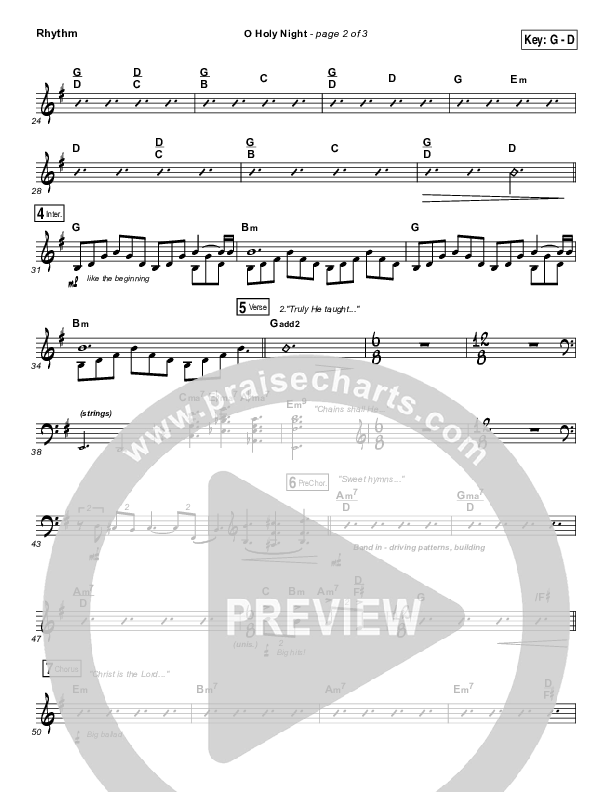 Download the Rhythm Chart for O Holy Night by Gateway Worship / Rebecca Hart, from the album O Holy Night. This song was arranged by Gateway Worship / Daniel Galbraith in the key of F, G.