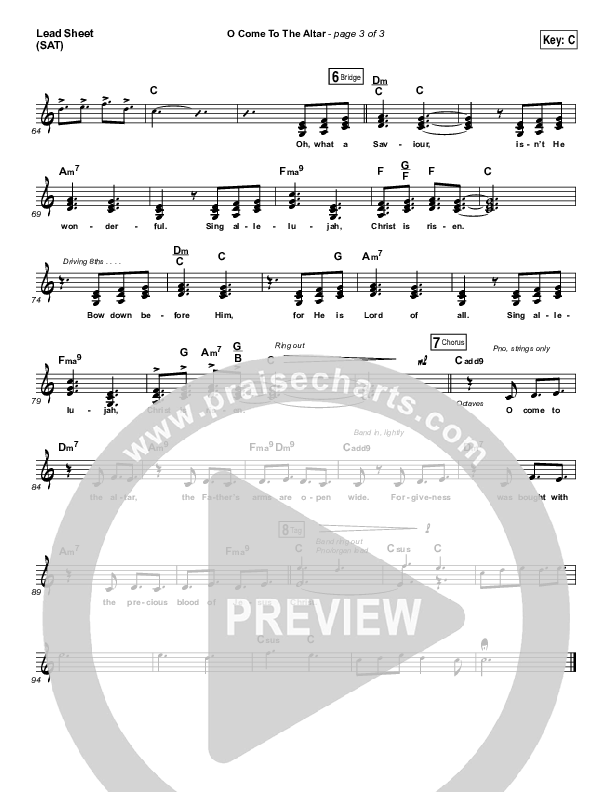 Download the sheet music for O Come To The Altar by Elevation Collective / Chris Brown / Israel Houghton, from the album Evidence. This song was arranged by Daniel Galbraith in the key of Bb, C.