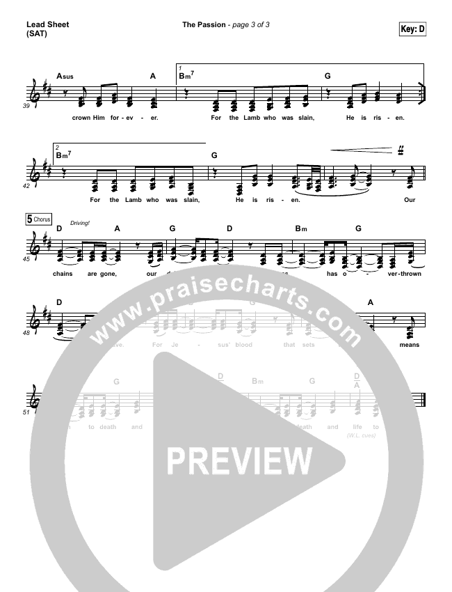 Download the sheet music for The Passion by Hillsong Worship, from the album There Is More. This song was arranged by Jared Haschek / Daniel Galbraith in the key of D, E, Eb.