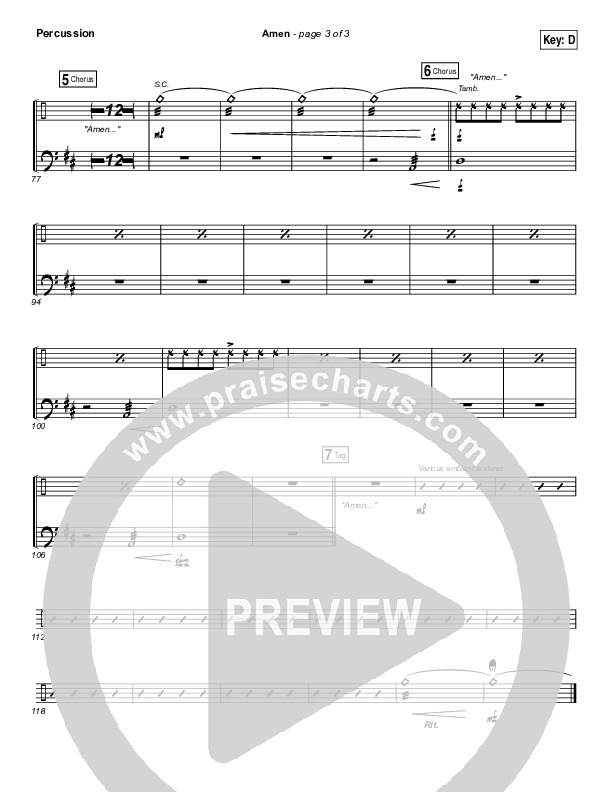 Download the percussion sheet music for Amen by People & Songs / Charity Gayle / Joshua Sherman, from the album The Emerging Sound Vol 3. This song was arranged by Ed Kerr / Daniel Galbraith in the key of D, Eb.