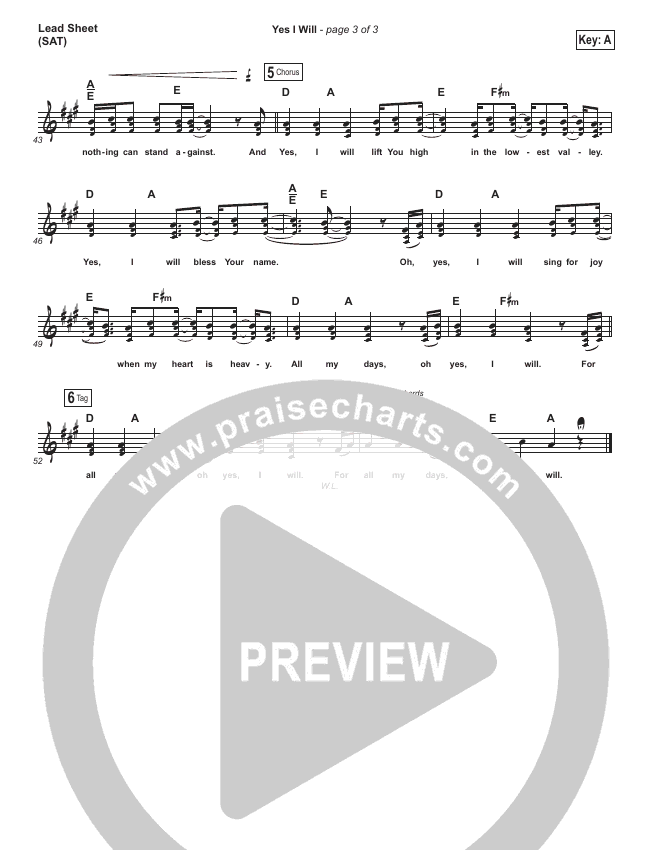 Yes I Will Sheet Music PDF (Vertical Worship)