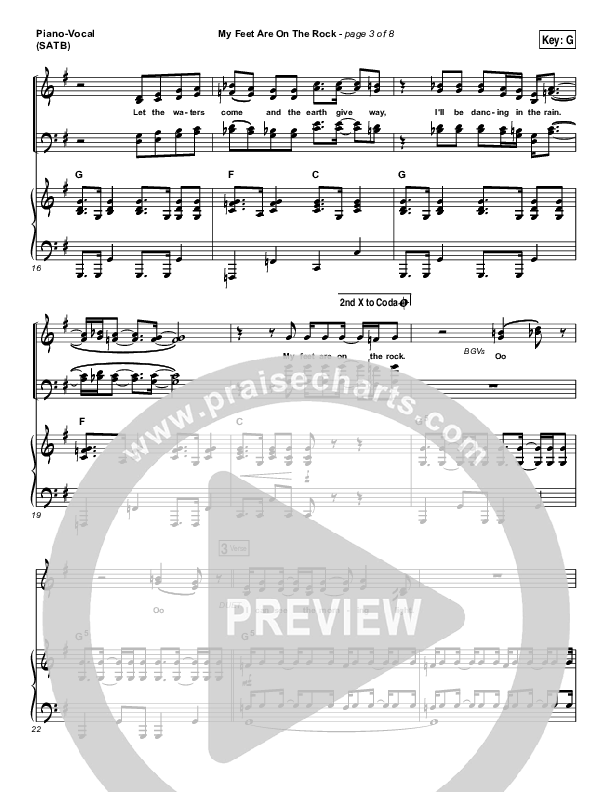 Download the sheet music for My Feet Are On The Rock by I Am They, from the album Trial & Triumph. This song was arranged by Jeff Moore / Daniel Galbraith in the key of F, G.