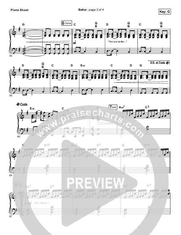 Download the piano sheet for Better by Pat Barrett, from the album Pat Barrett. This song was arranged by Grant Wall in the key of F, G.
