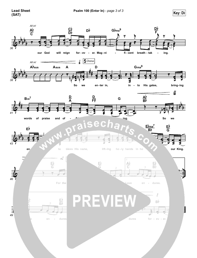 Download the Orchestration for Psalm 100 (Enter In) by People & Songs / Joshua Sherman / Charity Gayle / Steven Musso, from the album Psalm 100 (Enter In). This song was arranged by Dustin Loehrs / Daniel Galbraith in the key of D, Db.