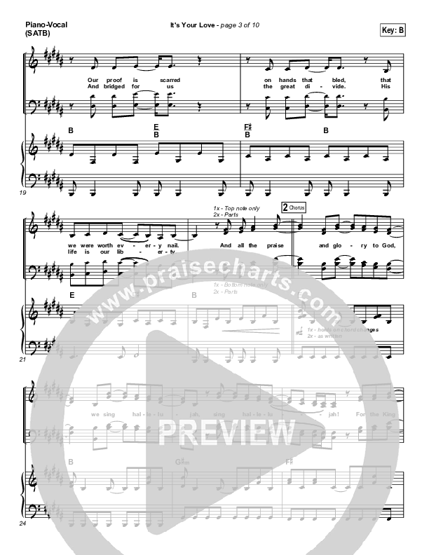 Download the sheet music for It's Your Love by Hillsong Worship, from the album Faith + Hope + Love. This song was arranged by Daniel Galbraith in the key of B, Bb.