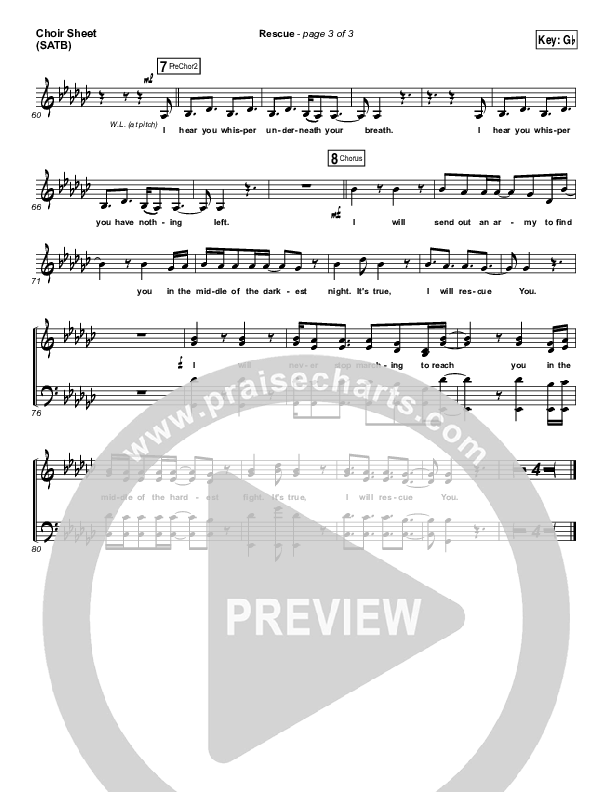 Download the Choir Sheet for Rescue by Lauren Daigle, from the album Look Up Child. This song was arranged by Daniel Galbraith in the key of G, Gb.