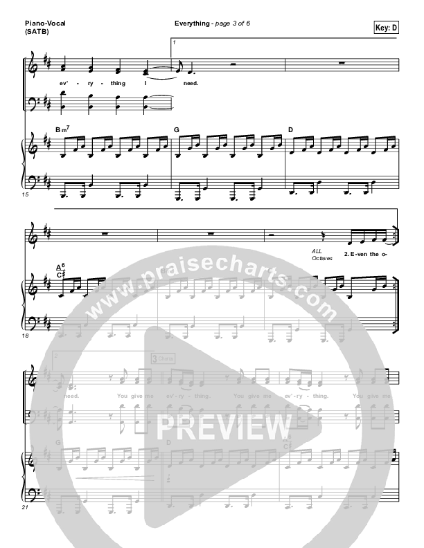 Download the sheet music for Everything by Lauren Daigle, from the album Look Up Child. This song was arranged by Jeff Moore / Daniel Galbraith in the key of C, D.