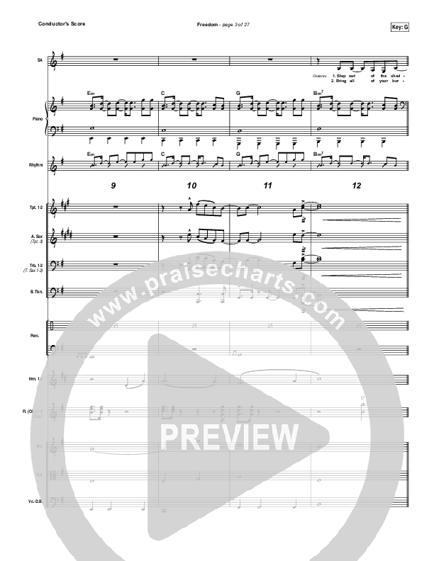 Download the Orchestration for Freedom by Jesus Culture / Kim Walker-Smith, from the album Living With A Fire. This song was arranged by Daniel Galbraith in the key of A, G.