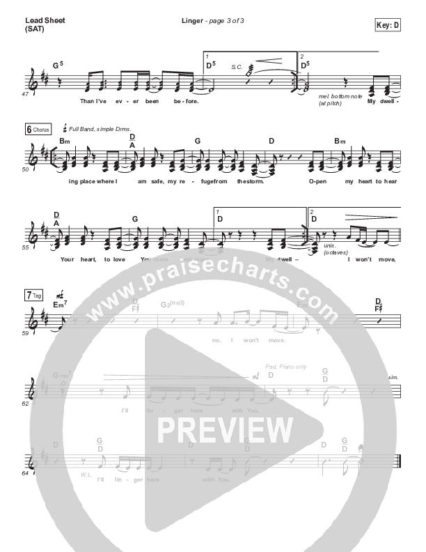 Download the sheet music for Linger by GATEWAY, from the album Greater Than. This song was arranged by Jeff Moore in the key of D, Eb.