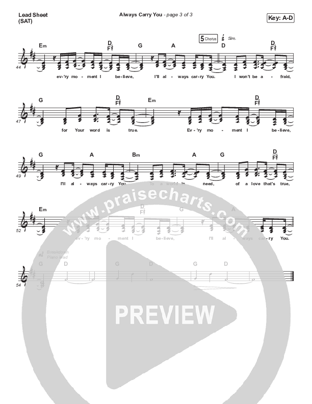 Download the sheet music for Always Carry You by Matt Maher, from the album The Advent Of Christmas. This song was arranged by Dustin Loehrs in the key of A, Bb.