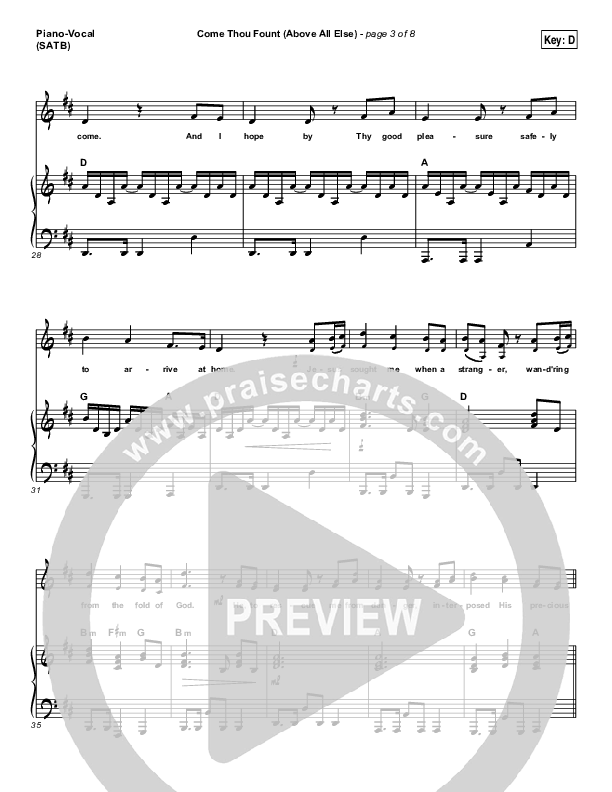 Download the sheet music for Come Thou Fount (Above All Else) by Shane & Shane / The Worship Initiative, from the album Hymns Vol 1. This song was arranged by Ed Kerr / Daniel Galbraith in the key of C, D.