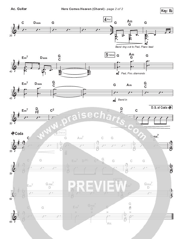 Download the Acoustic Guitar sheet music for Here Comes Heaven (Choral Anthem SATB) by Elevation Worship / Arr. Luke Gambill, from the album Hallelujah Here Below. This song was arranged by Luke Gambill / Daniel Galbraith in the key of Bb.