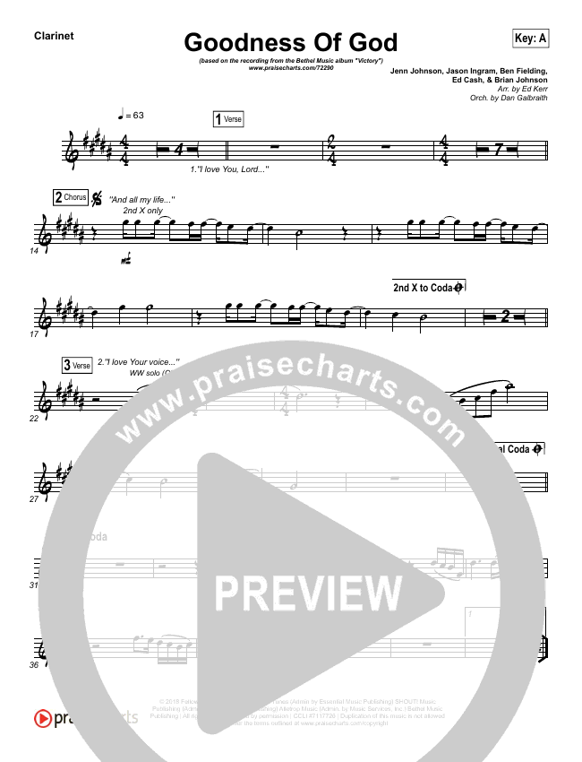 Download the Orchestration wind parts for Goodness Of God by Bethel Music / Jenn Johnson, from the album Victory. This song was arranged by Ed Kerr in the key of A, Ab, Bb, C, G.