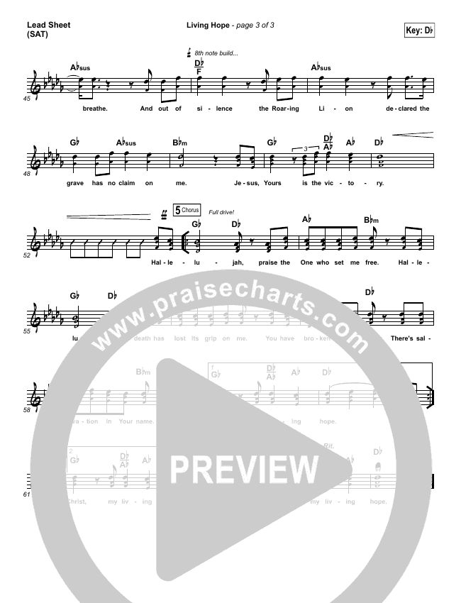 Download the Orchestration for Living Hope by Bethel Music / Brian Johnson / Jenn Johnson, from the album Victory. This song was arranged by Dustin Loehrs / Daniel Galbraith in the key of C, Db.