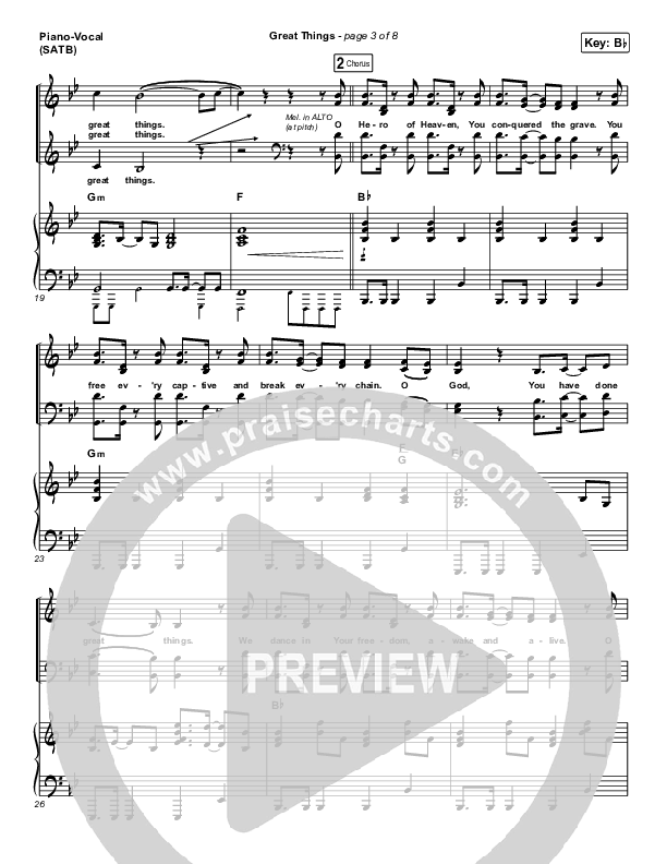 Download the sheet music for Great Things by Phil Wickham, from the album Living Hope (House Sessions). This song was arranged by Dustin Loehrs / Daniel Galbraith in the key of A, Bb.