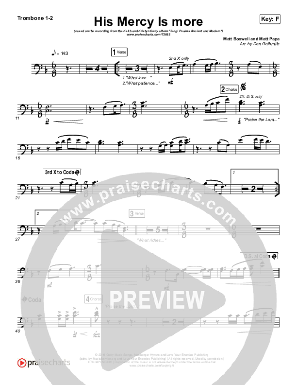 Download the Orchestration brass parts for His Mercy Is More by Matt Papa / Matt Boswell / Keith & Kristyn Getty, from the album Sing! Psalms Ancient and Modern. This song was arranged by Daniel Galbraith in the key of E, F, G.