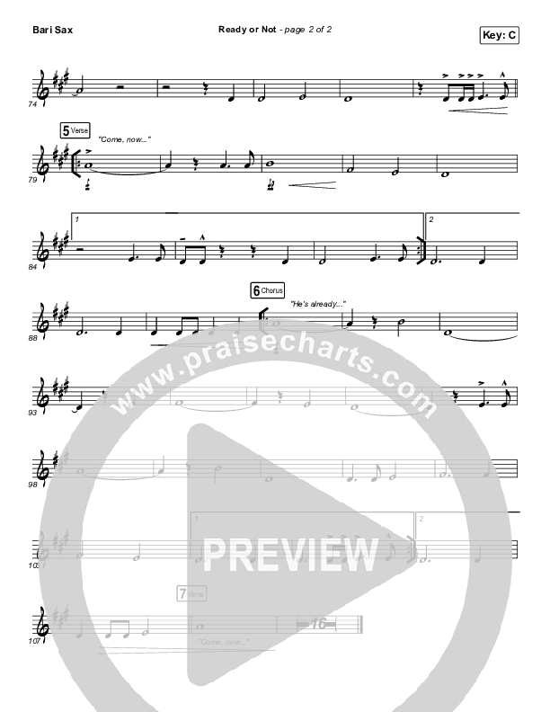 Download the Bari Sax sheet music for Ready Or Not by Hillsong UNITED, from the album People. This song was arranged by Lee Marcum / Daniel Galbraith in the key of Bb, C.