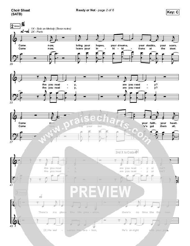 Download the Choir Sheet for Ready Or Not by Hillsong UNITED, from the album People. This song was arranged by Lee Marcum / Daniel Galbraith in the key of Bb, C.